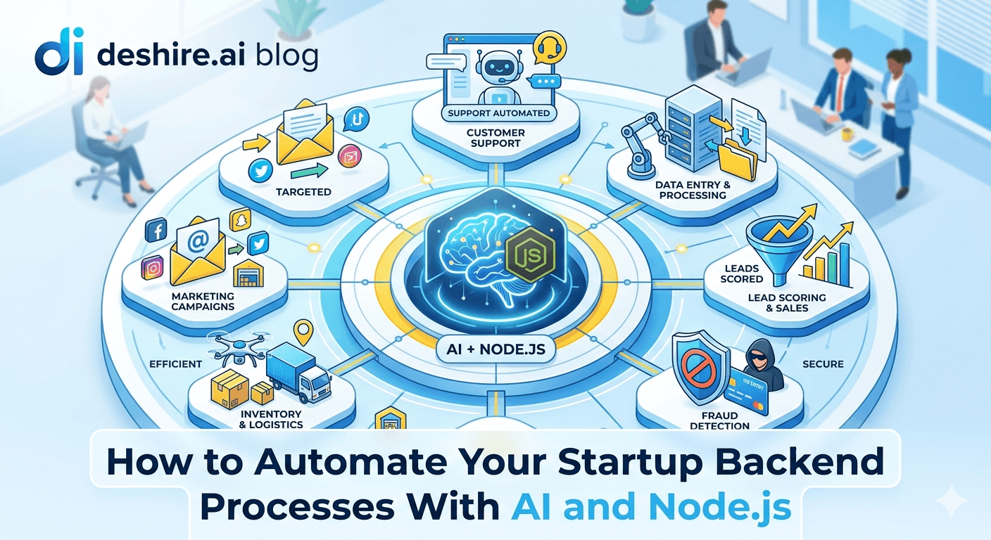 Most startup backend automation requires four components: a scheduler to trigger jobs on a schedule, a job queue to handle async processing without blocking the main API, an AI API for tasks requiring language understanding, and a notification layer to report results. Here's how they fit together in a Node.js stack: