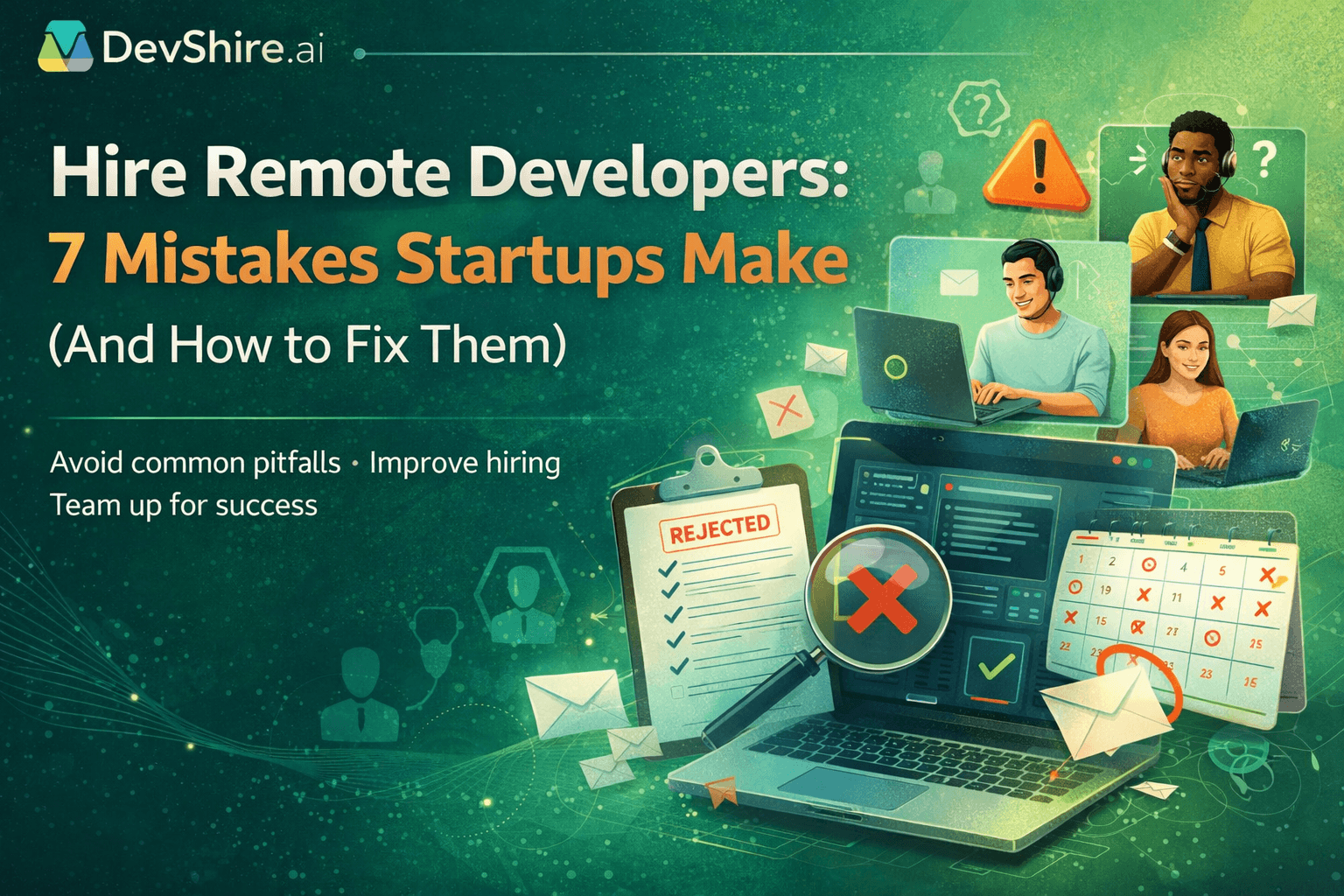 The 7 most common mistakes when trying to hire remote developers as a startup: posting a vague job description, skipping the AI toolchain screen, ignoring timezone overlap, hiring on personality not output, skipping the trial period, not setting a first-week deliverable, and using the wrong platform for the role type. Every one of these has a direct fix that takes under 2 hours to implement before your next hire.