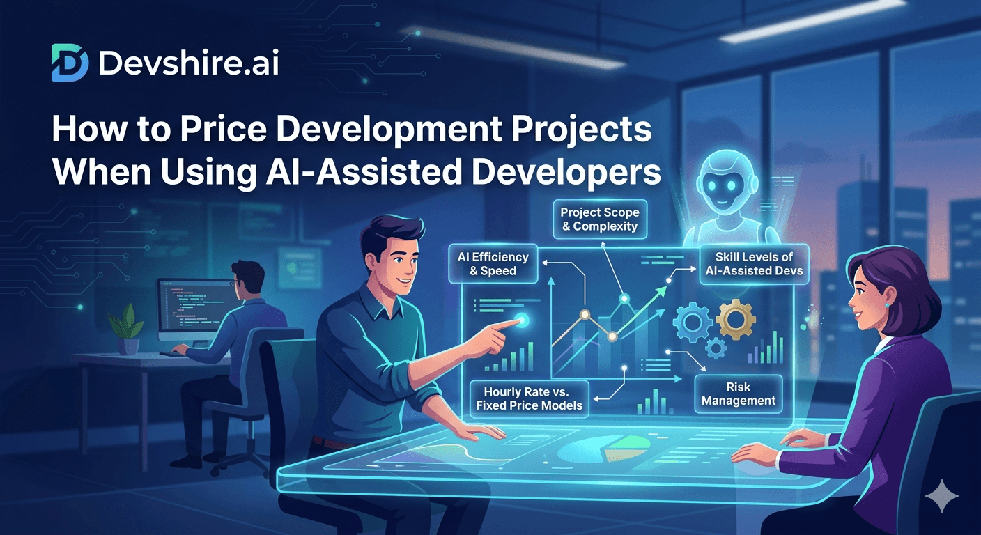Pricing dev projects with AI-assisted developers requires a shift from hourly billing to value-based or output-based models. AI cuts delivery time by 40โ60% on most feature work โ if you're still billing hourly, you're losing revenue. Anchor your pricing to scope and outcomes, not hours. Protect your margin with a fixed-scope contract and a clear change order process. Most teams that switch to output pricing see a 20โ35% revenue increase on the same workload.