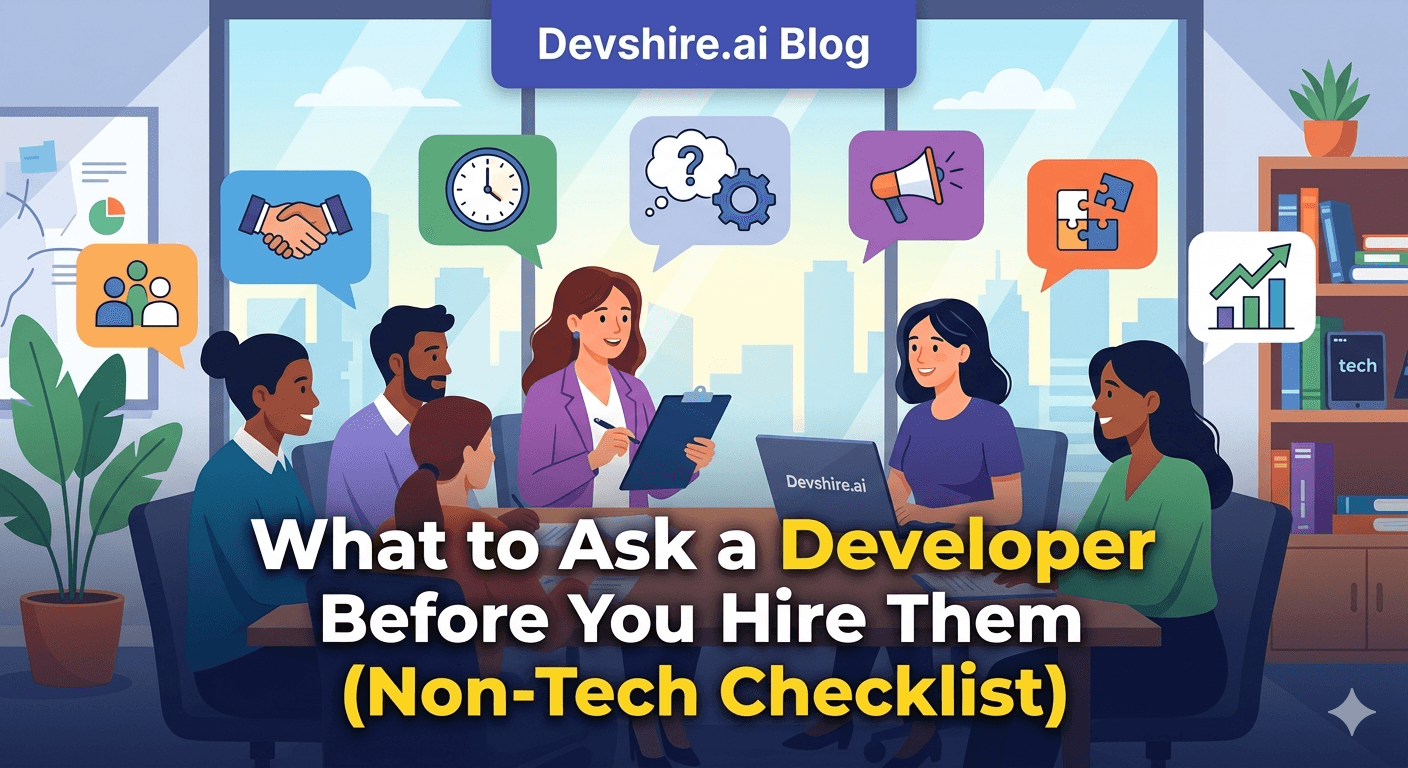 You're interviewing a developer. They sound confident. Their portfolio looks good. And you have absolutely no idea what questions to ask that would tell you whether they're the right hire. Most non-technical founder interview guides tell you to ask about their experience and motivation. That's table stakes. Here are the questions that actually surface something useful.
