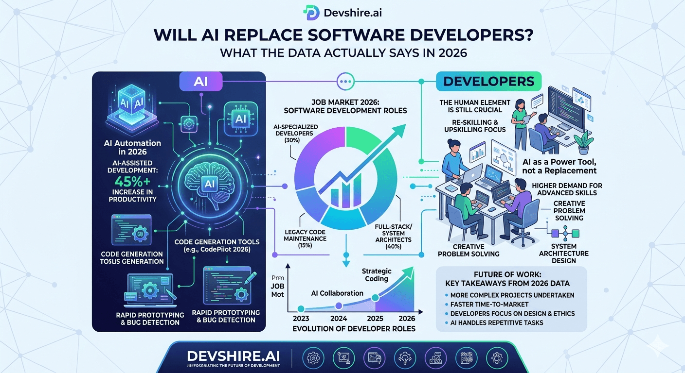 Every six months, a new wave of headlines announces that AI is about to make software developers obsolete. Every six months, the developer job market proves that prediction wrong — while quietly shifting underneath in ways that matter. The real story in 2026 isn't "AI replaces developers." It's more interesting than that. And if you're hiring, building a career, or running a dev team, the nuanced version is the one worth understanding.